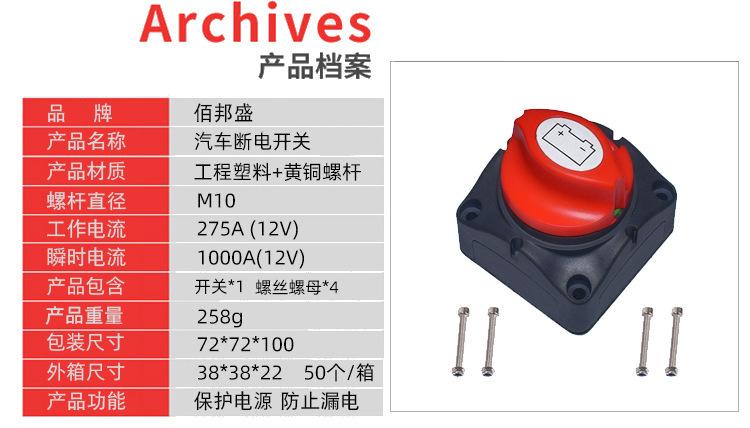 O guincho de desligamento da bateria de energia do carro do caminhão modificou o iate RV 10MM botão de alta corrente segundo interruptor de marcha