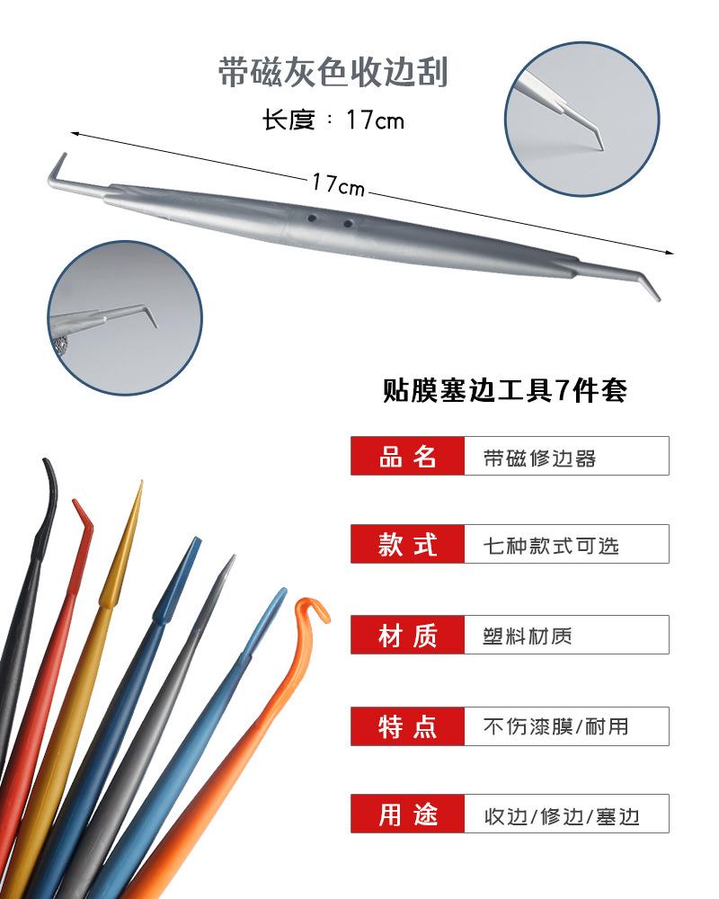 Raspador de bordas de filme que muda de cor com plugue magnético, ferramenta pequena para carro, conjunto de 7 peças para fechamento de bordas e tratamento de lacunas