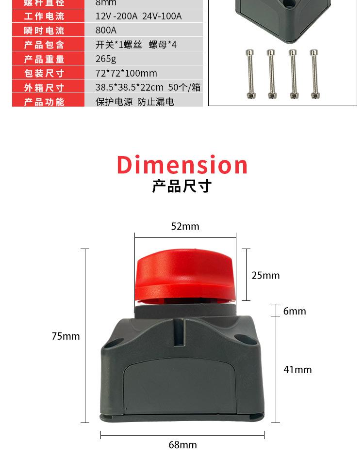 8mm Fonte de Alimentação para Carro de Segunda Velocidade Bateria Desligamento Guincho Iate RV Modificado Botão com Chave Removível de 200A