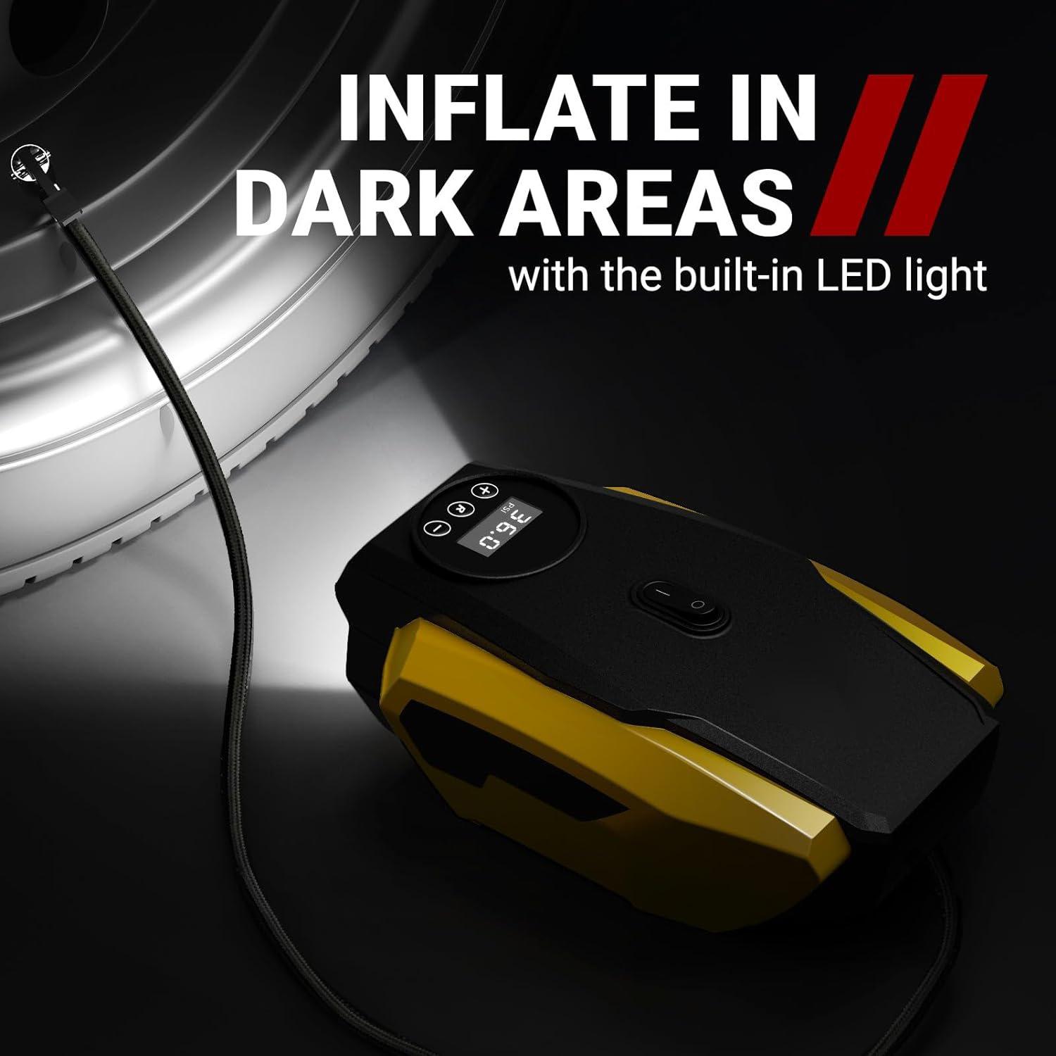 Bomba de Ar para Carro Cilindro Duplo Sem Fio 12V Bomba de Ar Elétrica Portátil Emergência Pneu Carro Display Digital Bomba de Ar