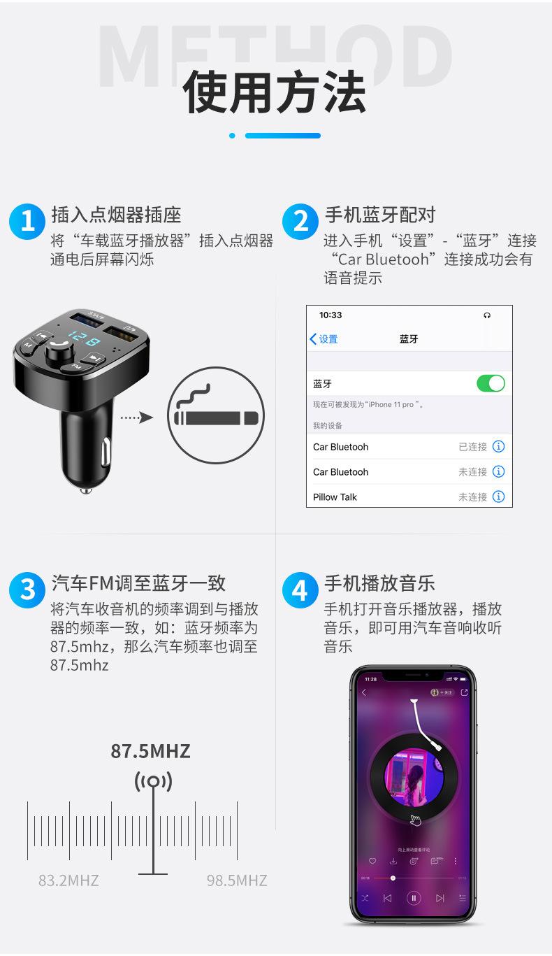 Nome do produto: Carregador de MP3 Bluetooth para carro