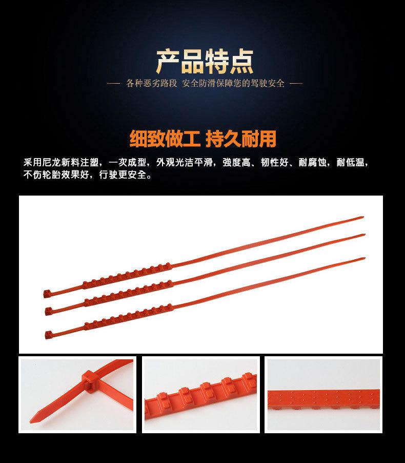 Corrente antiderrapante---Este tipo de corrente antiderrapante de nylon é semelhante em forma à corrente antiderrapante de tendão, exceto que o nylon usado é de alta qualidade e tem forte força de tração, e o fio de nylon com resistência à tração é disposto na borracha. Assim como a fabricação de pneus, o fio de nylon desempenha um papel na resistência à tensão e reforço, e desempenha um papel antiderrapante. Embora a aparência seja semelhante à corrente de tendão, a espessura geral e a malha são obviamente maiores do que a corrente de tendão.