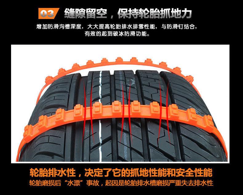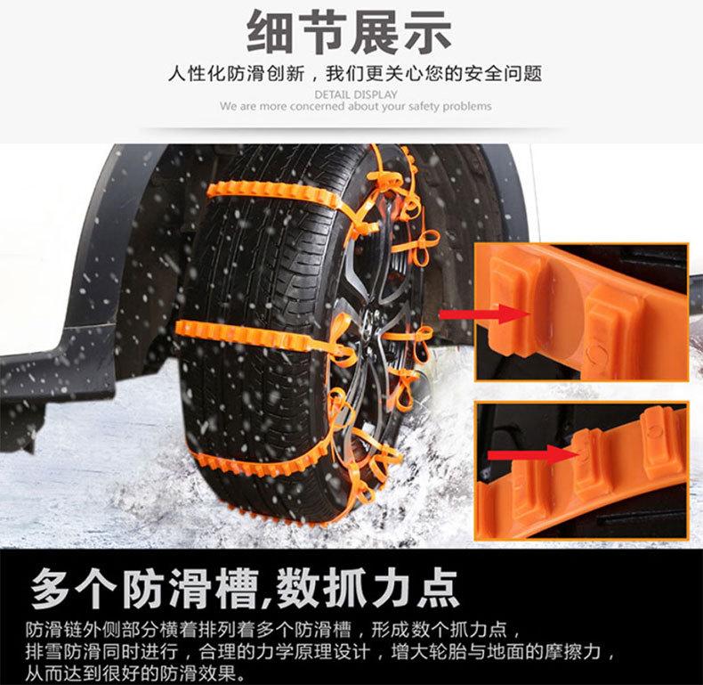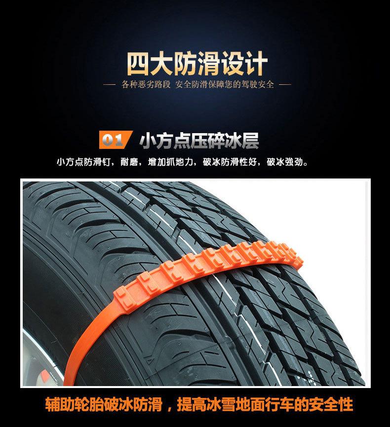 Esta corrente antiderrapante de borracha é muito útil em dias de neve e escalada de montanhas. A corrente antiderrapante para carro é um produto de segurança para carro projetado para a segurança na direção de carro. A superfície áspera especial da corrente antiderrapante aumenta o atrito com a superfície da estrada. Normalmente em condições de estrada com neve e lama, ela desempenha um papel na proteção dos pneus, evitando que os pneus escorreguem e garantindo a direção normal do veículo. Especialmente no inverno em estradas com neve, ela pode efetivamente garantir a direção suave e a segurança de direção do veículo.