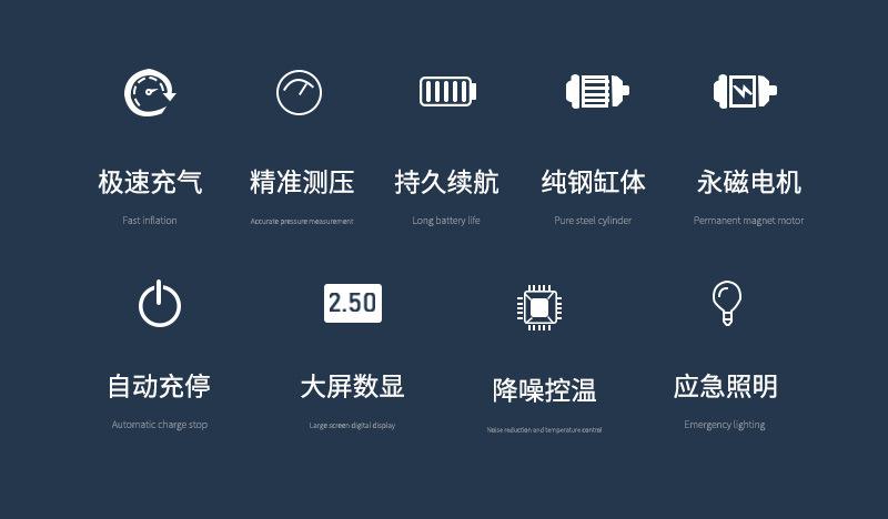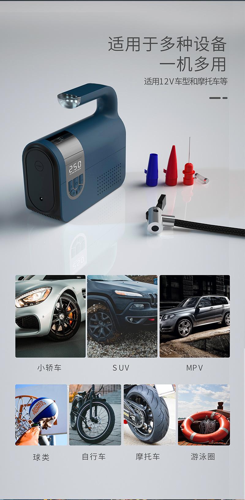 Bomba de Ar para Carro Cilindro Duplo Doméstica 12V Bomba de Ar Elétrica Portátil Emergência Pneu Carro Bomba de Ar Display Digital