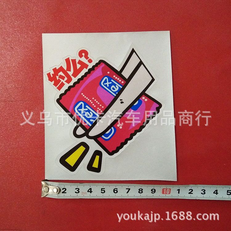 O adesivo é impresso em filme PP, não em papel, por isso é à prova d'água e refletivo. O adesivo pode ser aplicado em locais como o para-choque e a carroceria do carro, e também pode cobrir alguns arranhões menores na carroceria do carro. Também existem vários adesivos de outras séries de desenhos animados. Clientes que precisam misturar e combinar podem adicioná-los ao carrinho de compras para lote misto.