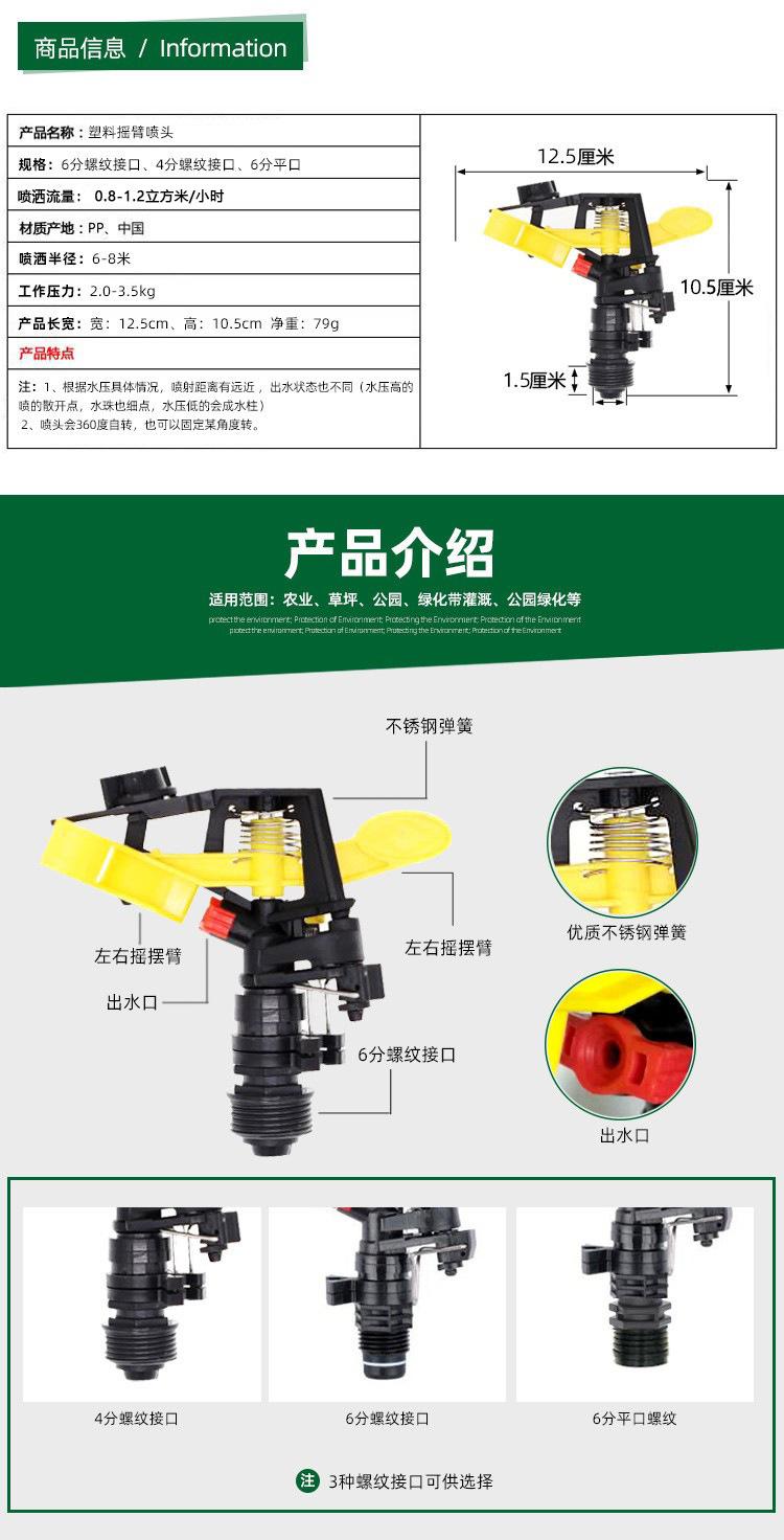 4 pontos de plástico ajustável rocker bico 360 graus spray rotativo automático jardim umidificação gramado irrigação agrícola asa amarela