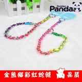Coleira de corrente de cobra colorida arco-íris panda dourada, coleira retrátil para treinamento de cães, corrente de pescoço, corrente P, anel de ferro para animais de estimação, corrente de tração de metal