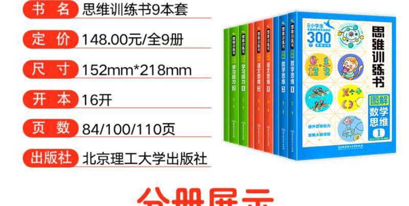 Livro de treinamento de pensamento nove volumes Alunos da escola primária matemática Capacidade de aprendizagem chinesa treinamento de pensamento