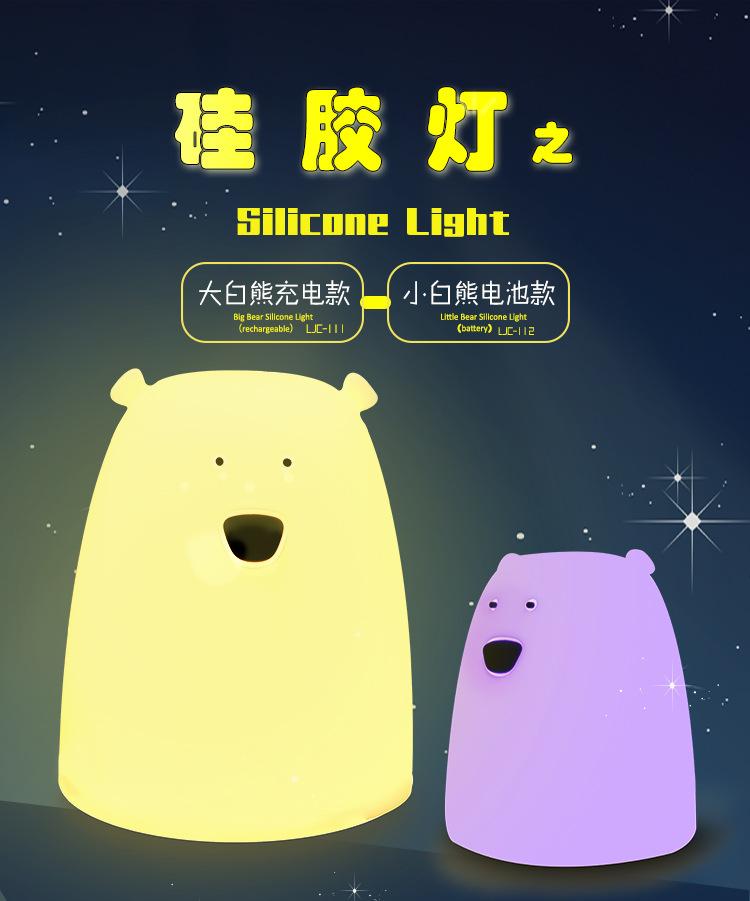 [Nome do Produto] Luminária de silicone Little White Bear (tipo bateria)