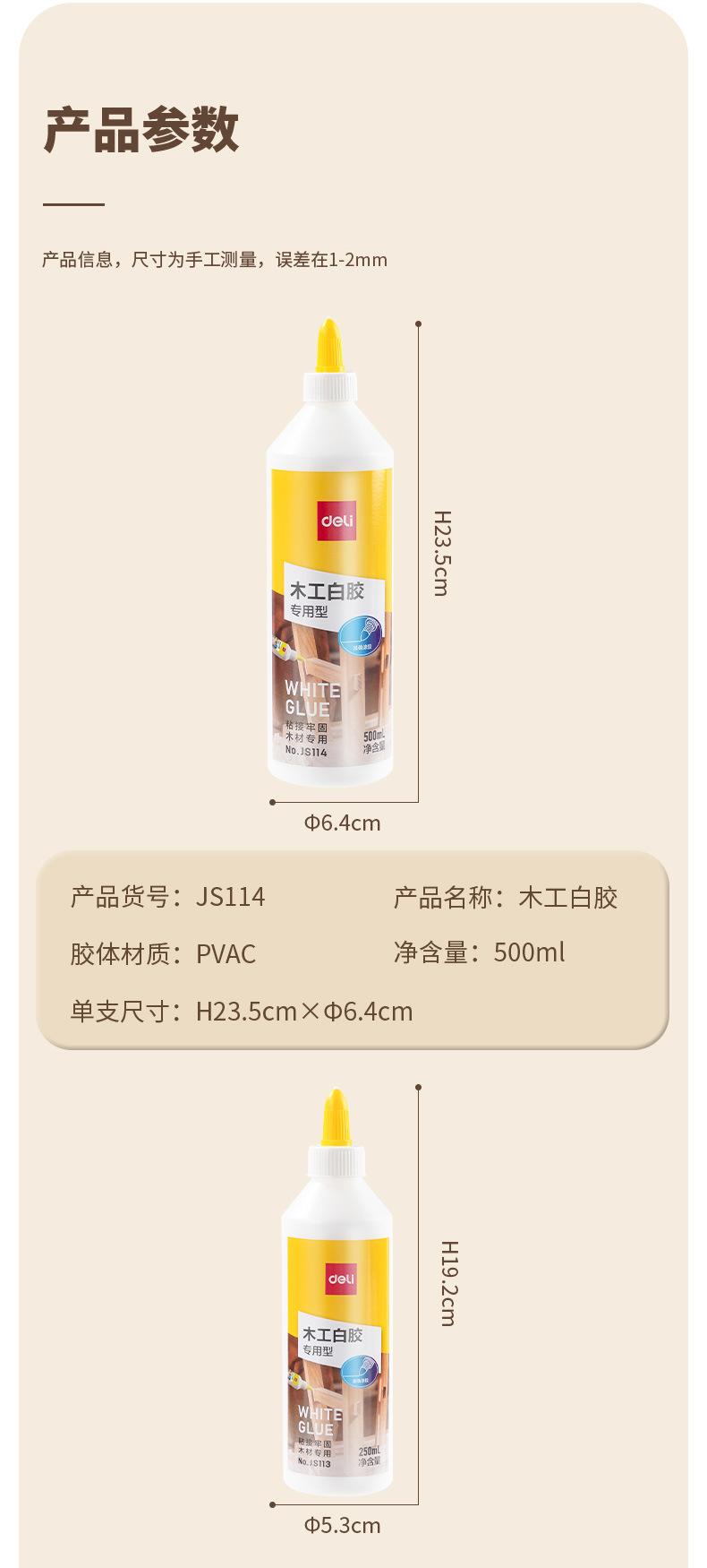Deli JS112 marcenaria látex branco feito à mão cola DIY cola branca artesanal estudante diy modelo adesivo madeira