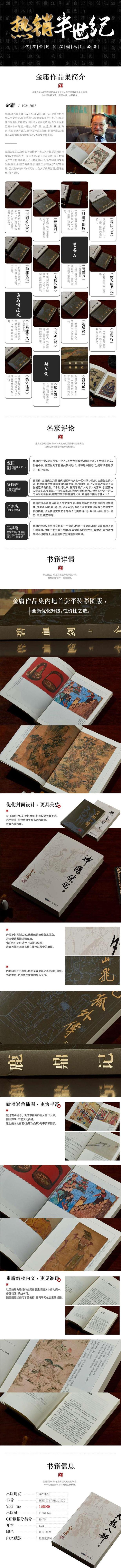 1. O conteúdo do texto é exatamente o mesmo das versões Sanlian e Guangzhou antigas que circularam na China antes do lançamento da nova versão revisada. É a versão original da coleção de obras de Jin Yong. Esta versão está em circulação há muito tempo e tem um grande volume de vendas. É também a versão com a qual os fãs de Jin estão familiarizados. 2. O design da capa usa as ilustrações de texto tradicionais da coleção Jin Yong de Jiang Yunxing e Wang Sima como material. É impresso com características especiais, misturando o clássico e o moderno, combinando clássicos com moda. 3. Na revisão de texto, a versão Mingheshe é usada como texto base, e a versão serial do jornal, versão serial revisada, Yuanjing, Yuanliu, Sanlian e outras versões são referenciadas para corrigir erros e omissões em versões anteriores. Esforce-se pela excelência e perfeição. 4. A Coleção de Obras de Jin Yong (Edição Antiga Langsheng) inclui 12 conjuntos de obras totalizando 36 volumes, e um apêndice inclui vários contos e biografias de figuras históricas do Sr. Jin Yong.