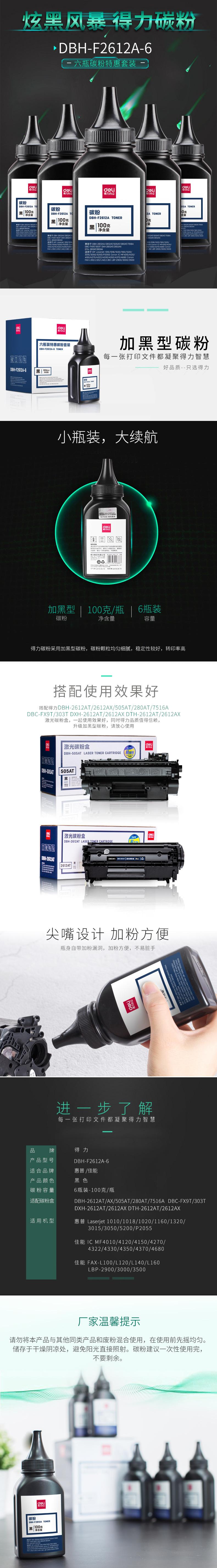 Deli DBH-F2612A toner preto 100G impressora a laser mais toner 6 garrafas de toner atacado