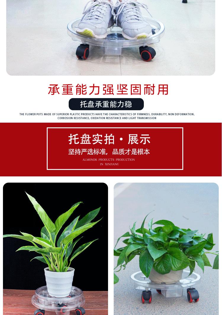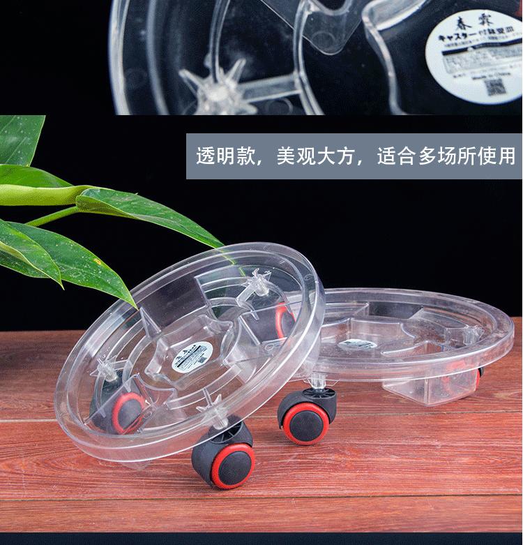Compre Bandeja para vaso de flores transparente universal com roda de plástico móvel para vaso de flores redonda, bandeja para flores de resina espessada com rolo no atacado no Joom.pro