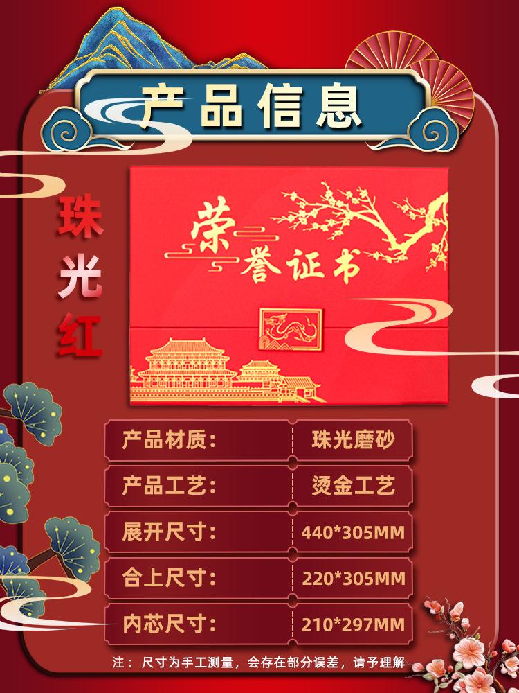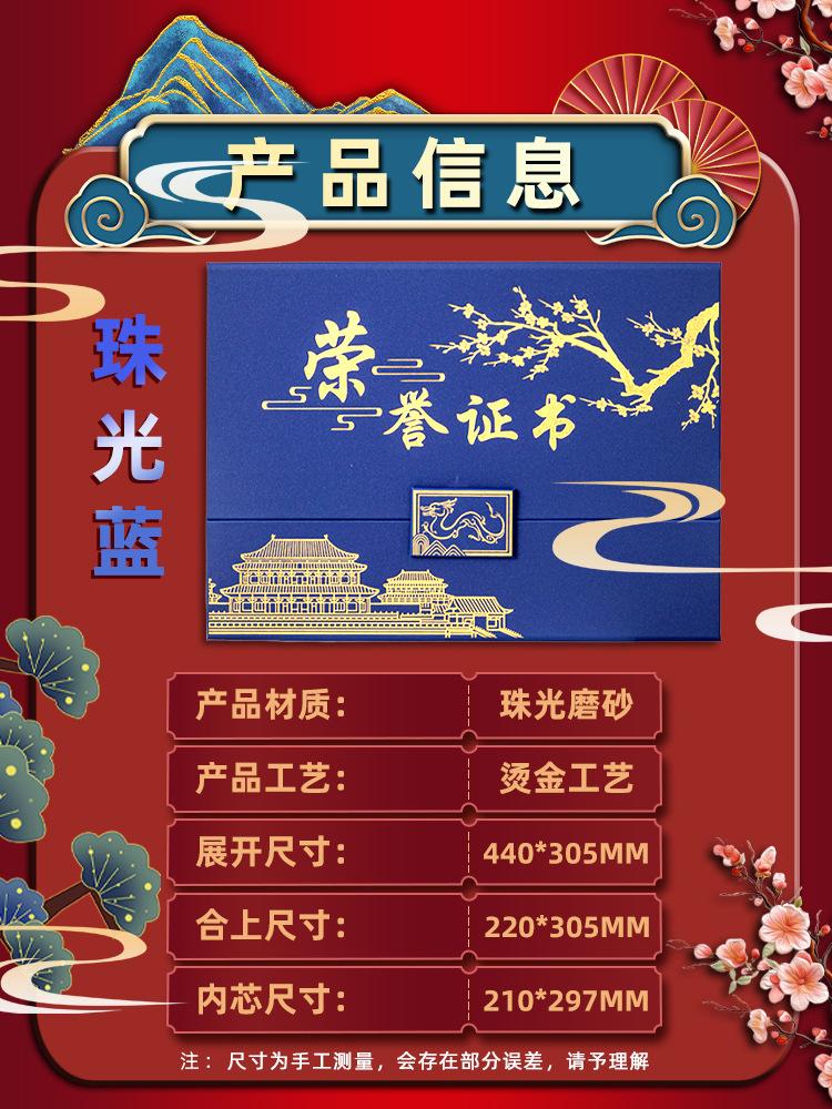 Certificado Nacional de Honra do Vento da Maré 30% A4 Edição Horizontal Certificado de Prêmio Fivela Magnética Certificado de Prêmio Carta de Recomendação de Caso
