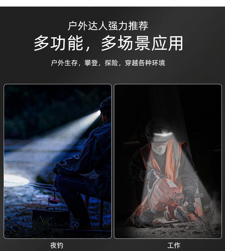Farol de indução LED de alta potência transfronteiriço, multifuncional, com clipe para boné de pesca noturna, carregamento USB, iluminação de emergência externa