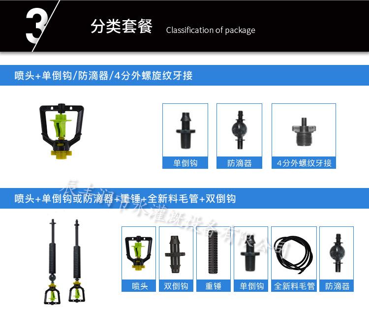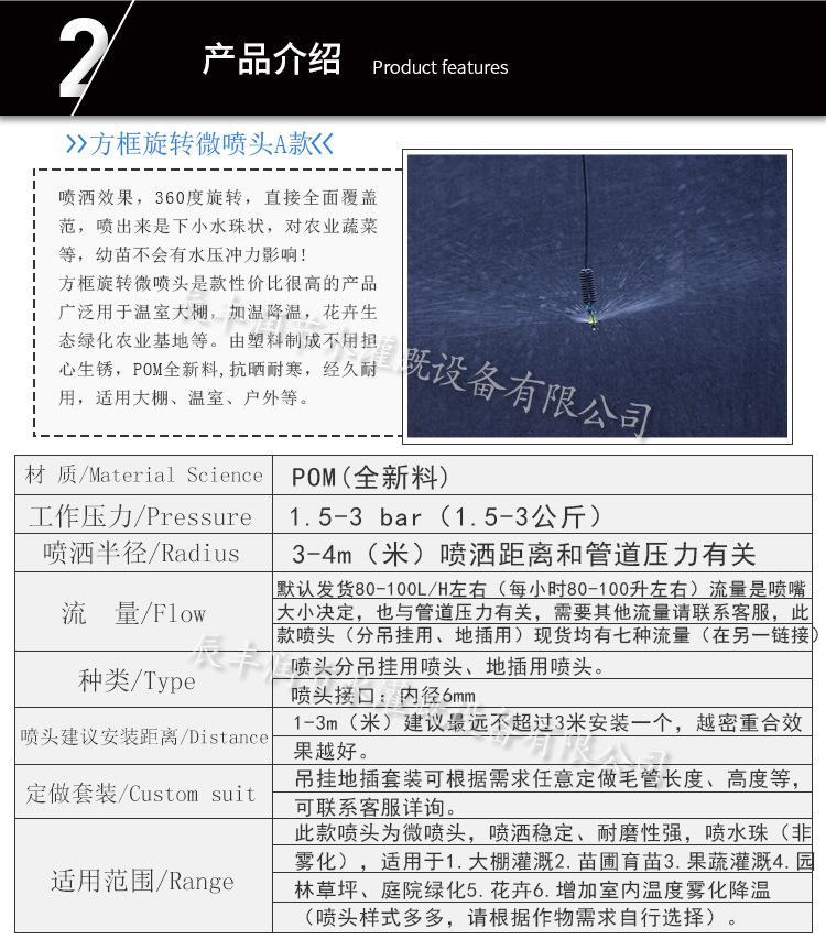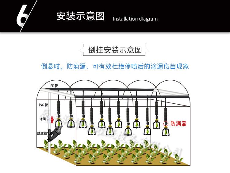 Spray multi-fluxo de água quadro de saída de água rotativo pendurado estufa pendurado spray automático micro bico refração atomização único micro bico