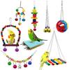 Brinquedo de mastigação de papagaio, balanço de pássaro, 6 sinos, corda de sino simples, conjunto de 3 peças