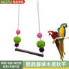 Brinquedo de mordida de papagaio swing pássaro brinquedo bola de vime ponte suspensa de madeira