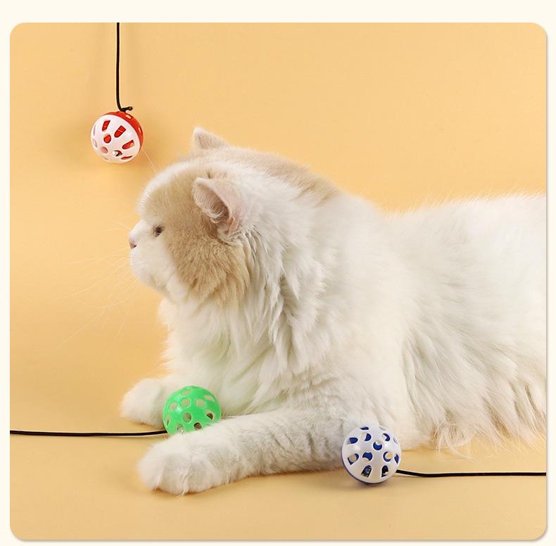Bell bola elástica brinquedo do gato auto-Oi brinquedo do gato colorido som de plástico Sino interativo auto-Oi bola de gato engraçado