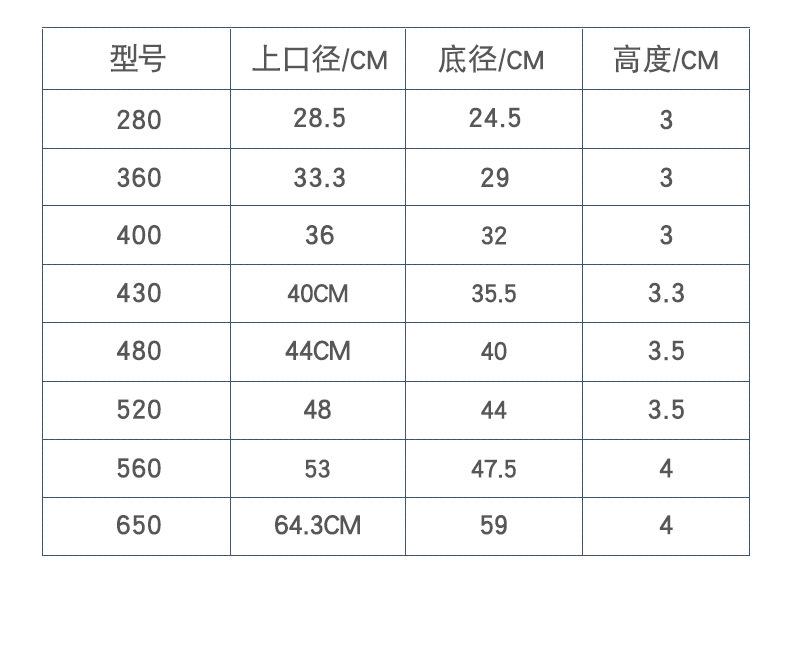 280 diameter 28.5 * bottom diameter 24.5 * high 3cm