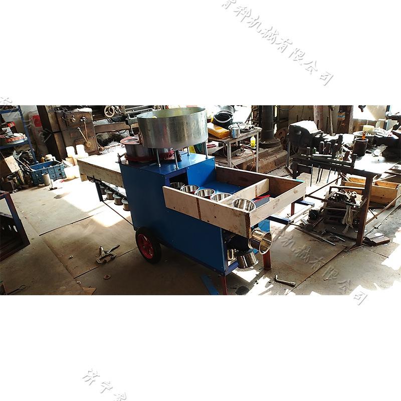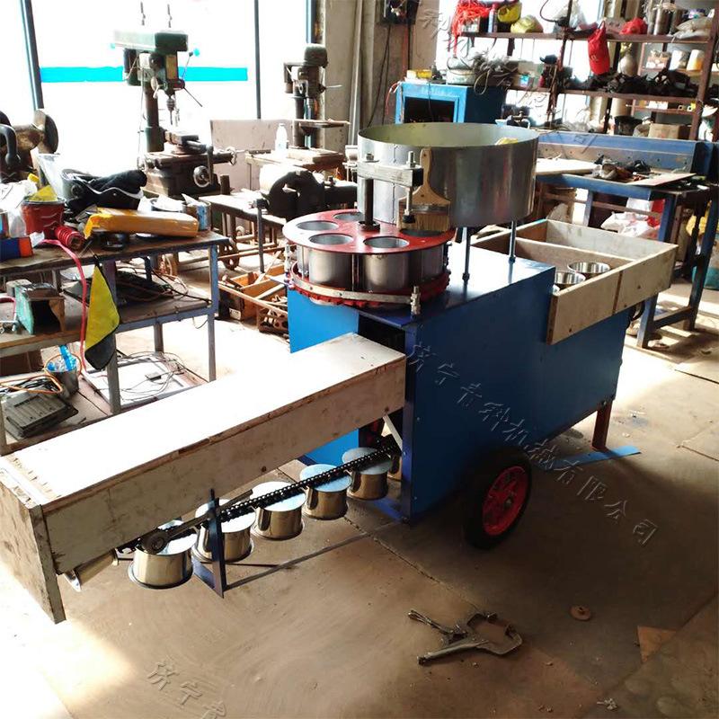 O carregador de solo para vasos de nutrientes é acionado por um motor elétrico ou motor a gasolina para acionar a caixa de engrenagens para girar o eixo central e a biela. O eixo central aciona as asas de movimentação do solo na tremonha para alimentar o solo da muda no barril. O barril gira para carregar o solo da muda no vaso de nutrientes de forma quantitativa. A haste de conexão gira para concluir o transporte do vaso. O vaso é carregado e removido manualmente durante todo o processo.