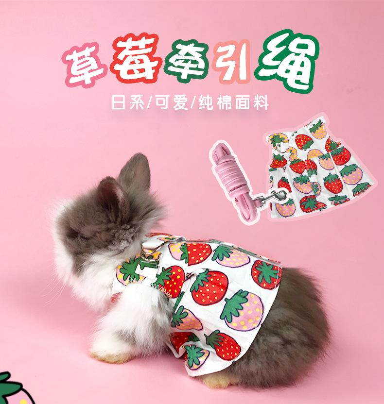 Pet Rabbit Traction Rope Cute Strawberry Vall Clothes Rabbit Rope Anti-break Free Pet Rope Pet Rabbit Clothes