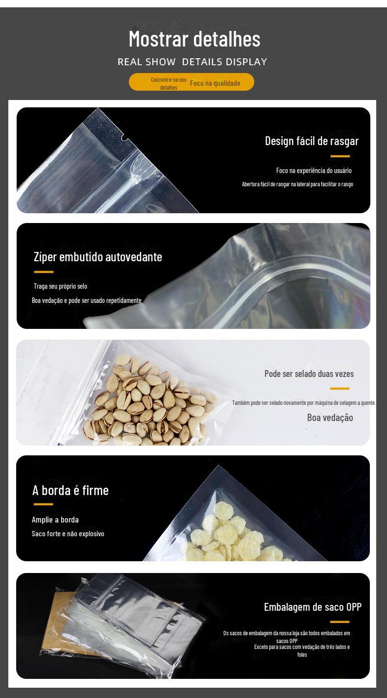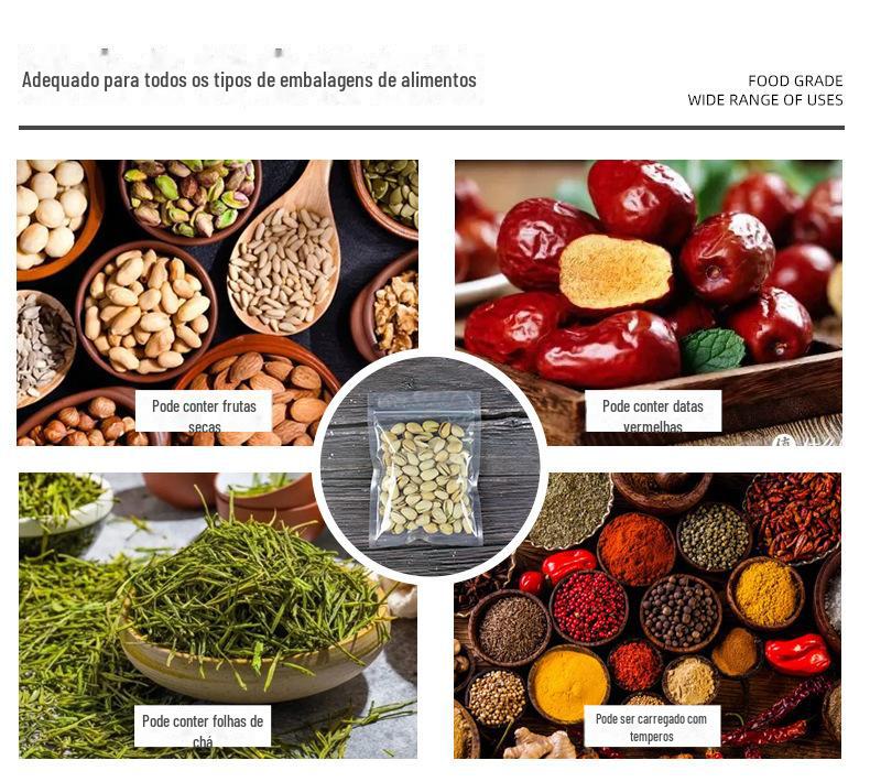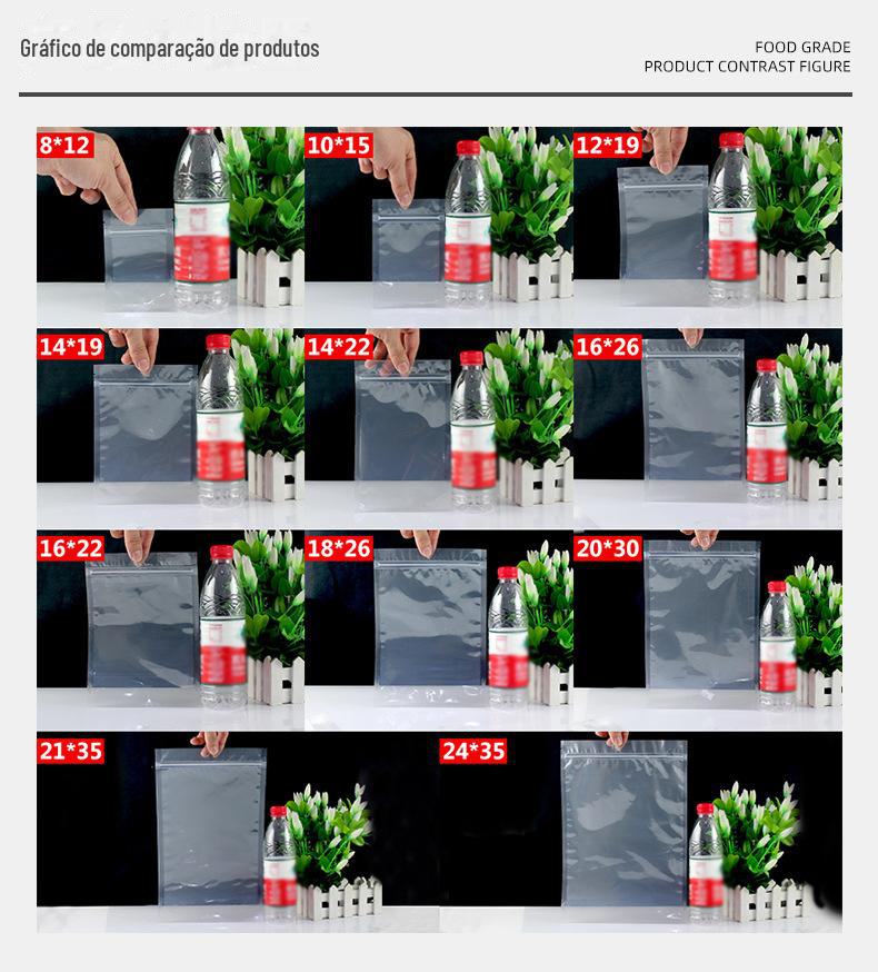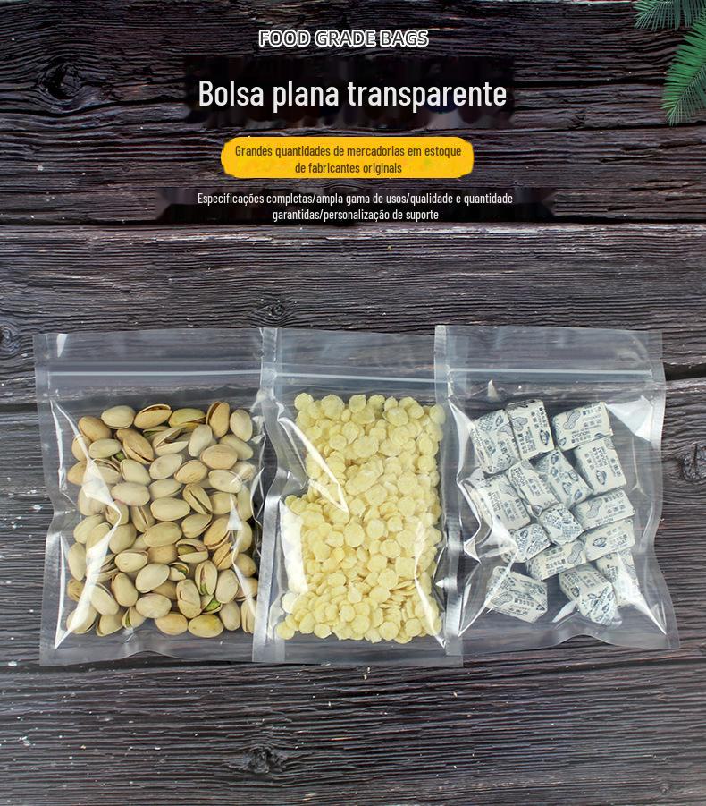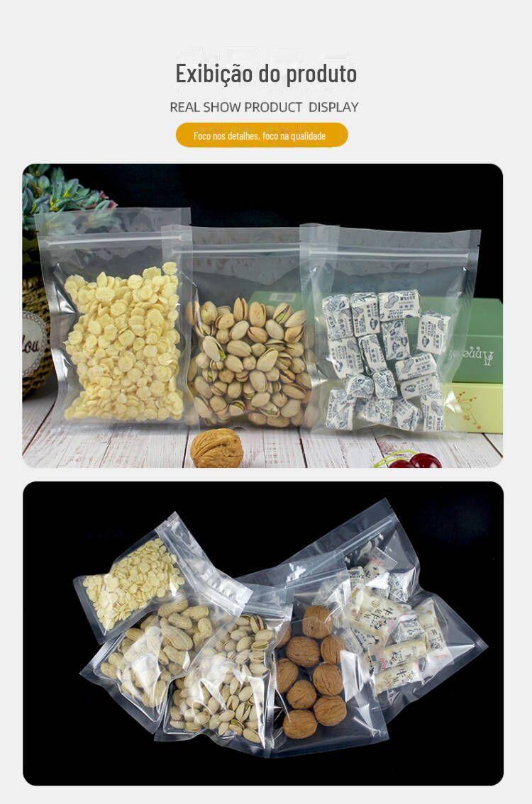 Saco plástico transparente plano com fecho ziplock, saco transparente para doces, pequeno saco de embalagem, saco de alimentos, saco plástico selado em estoque, atacado