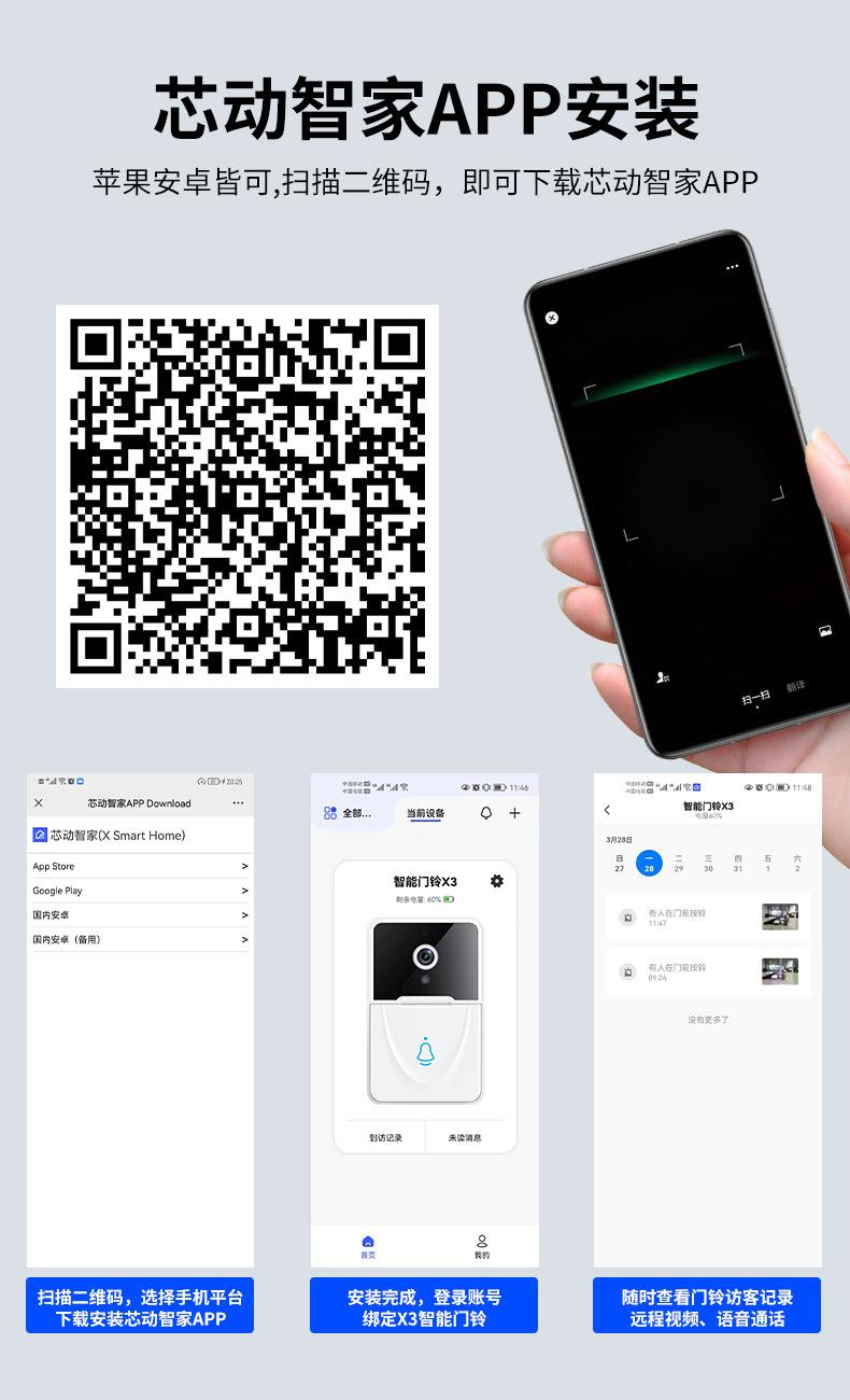 | Parâmetros do produto da campainha de vídeo X3 |
