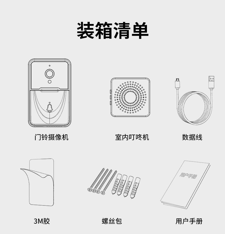 | Lista de embalagem: campainha, máquina dingdong, manual de instruções,3MAdesivos, pacote de parafusos, cabo de dados |