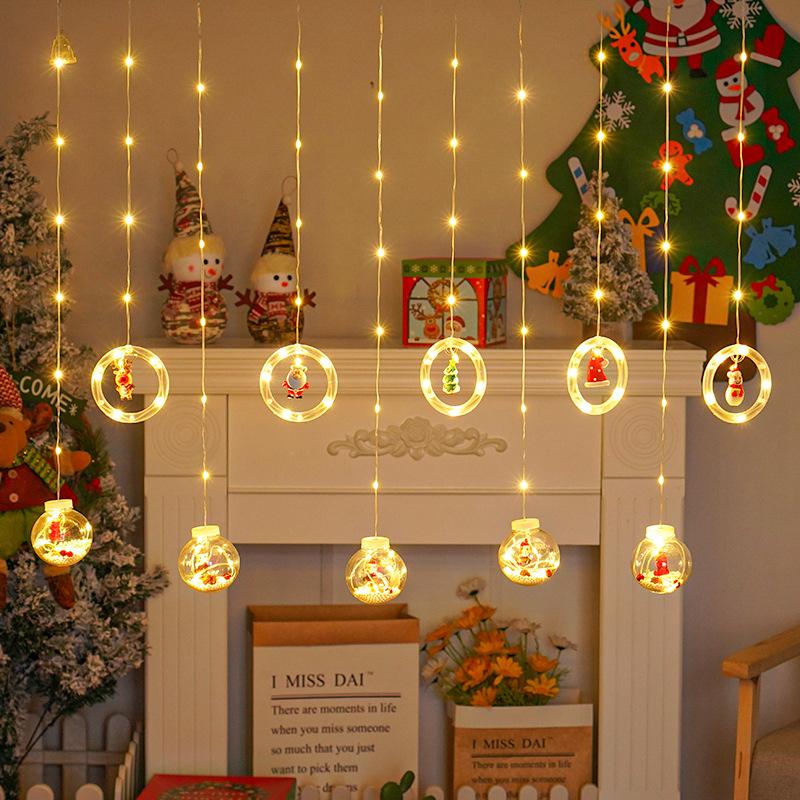 Luzes de Cortina de Cordão de Couro Transfronteiriças USB Controle Remoto Luzes de Atmosfera Decoração de Estrela de Natal Floco de Neve Anel de Árvore de Natal Fio de Cobre