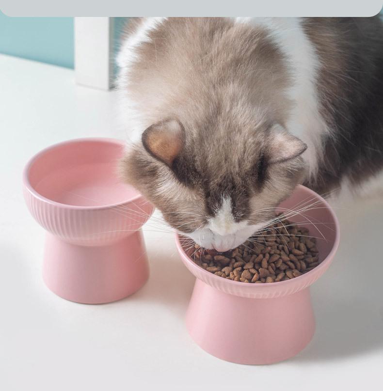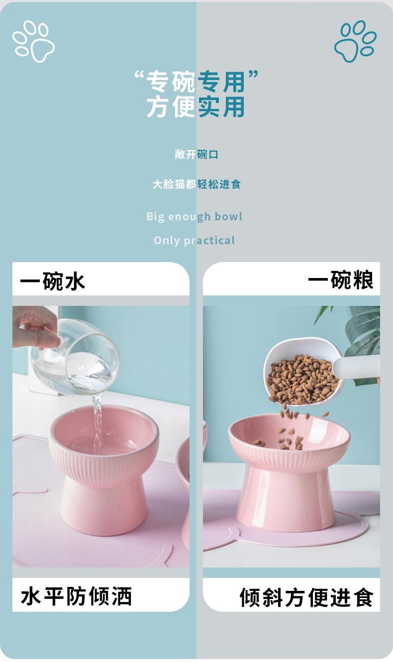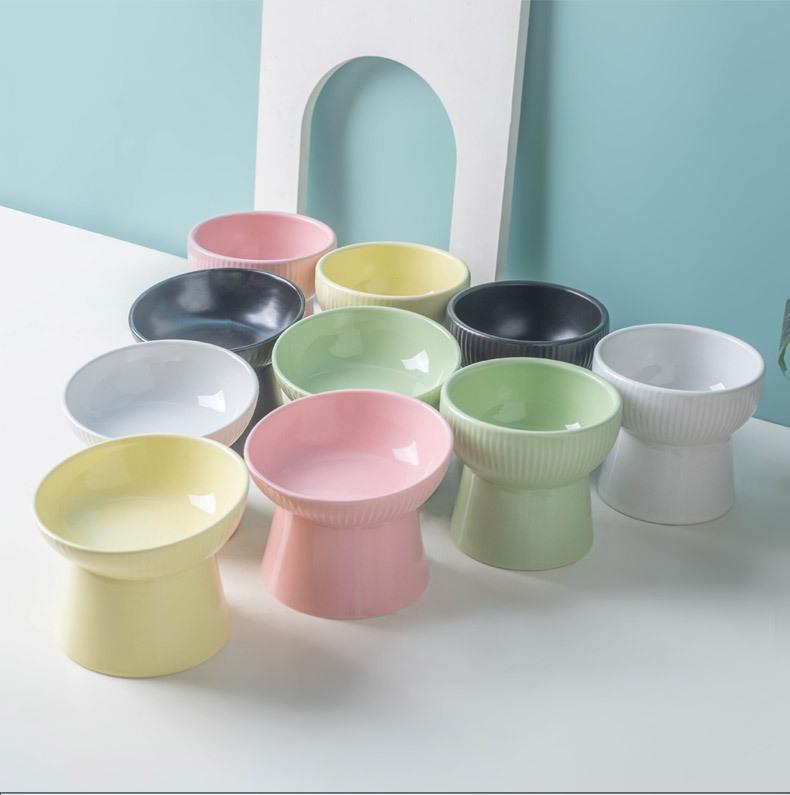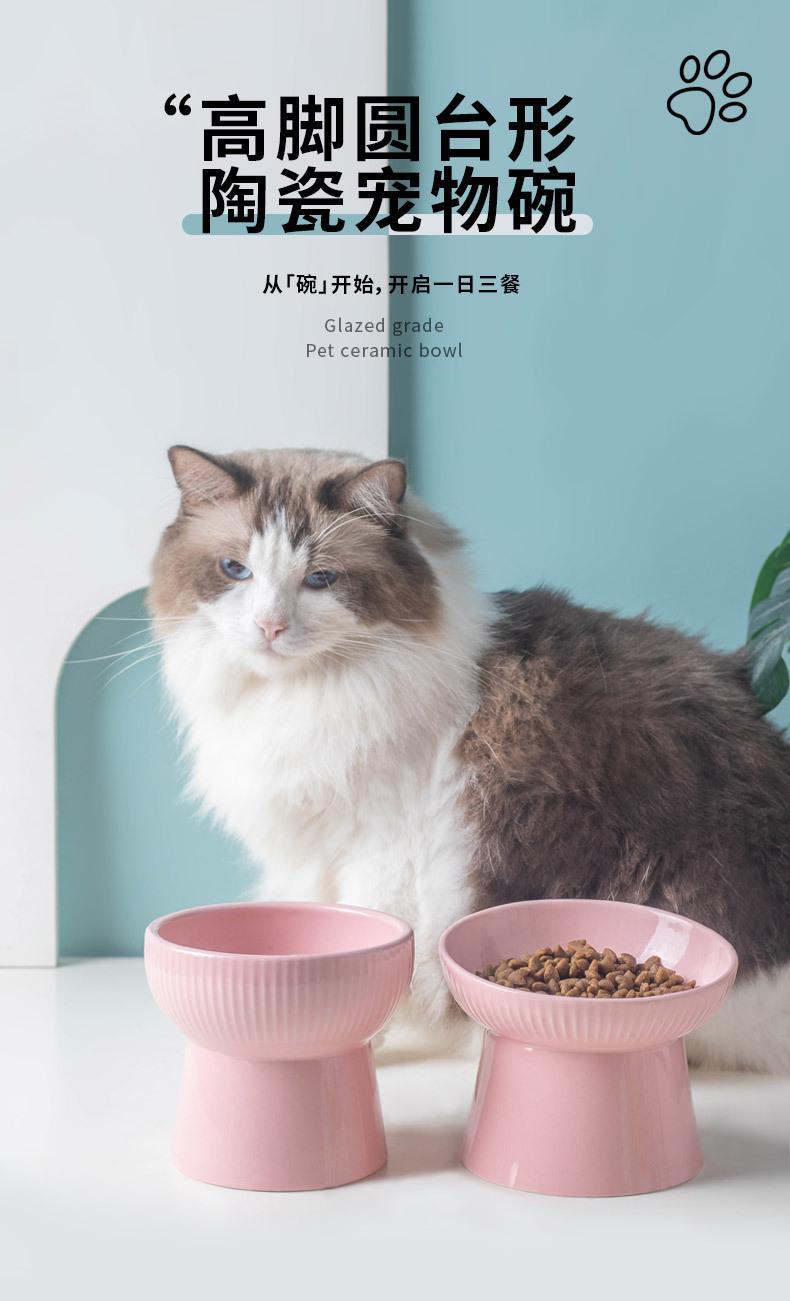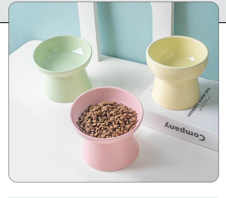 Tigela de gato de cerâmica tigela de cachorro bonito oblíquo único Tigela Bacia de Gato pescoço proteção cálice bacia de cão anti-detonante suprimentos para gatos atacado