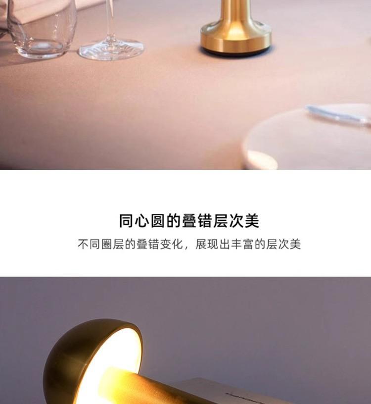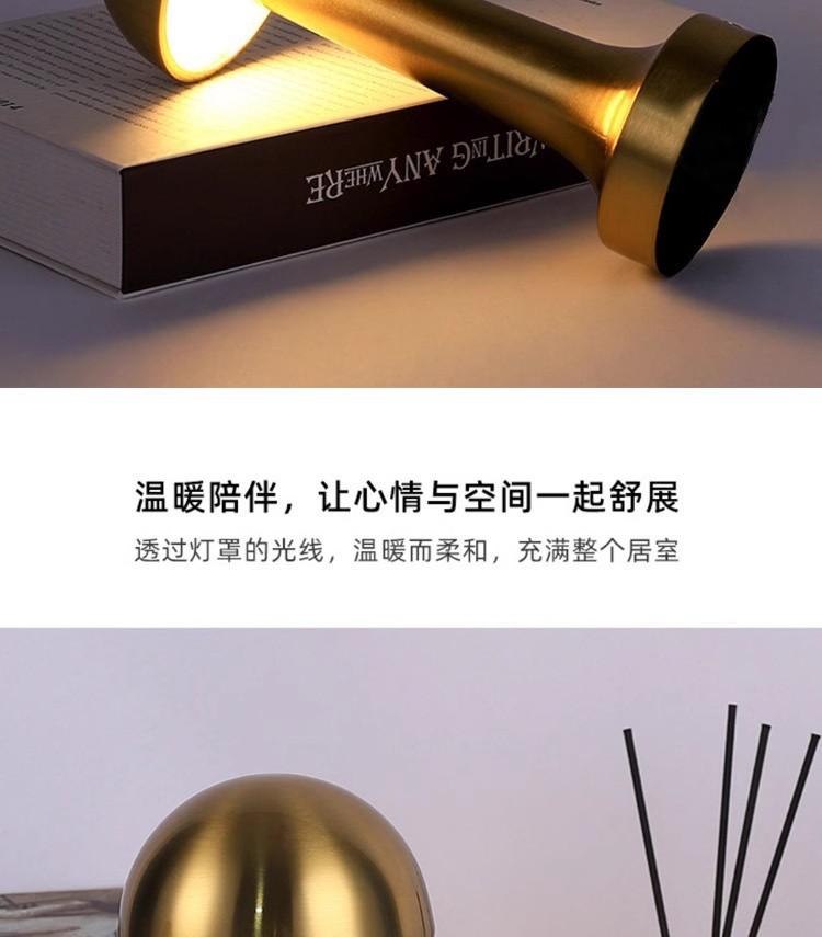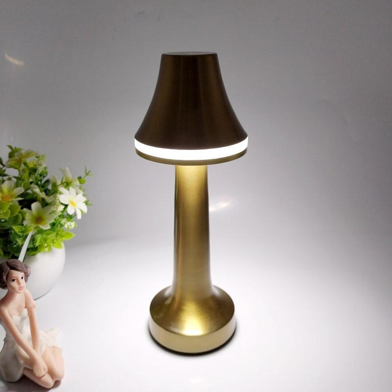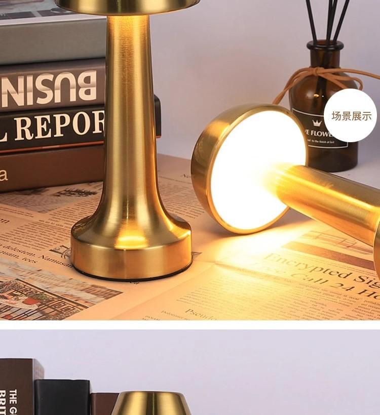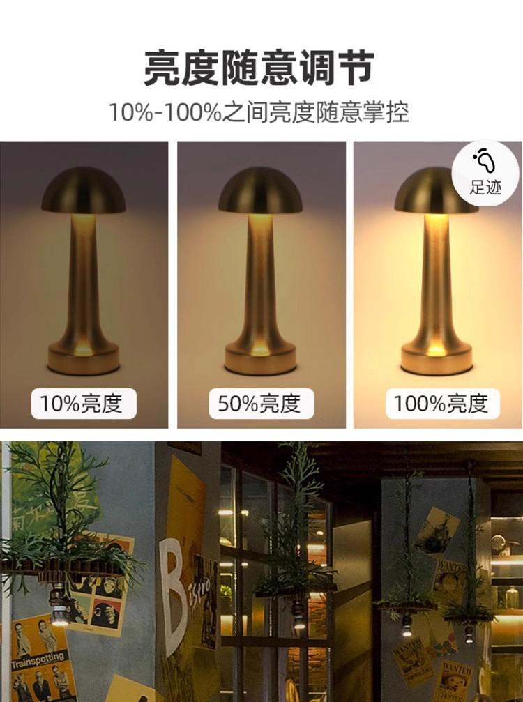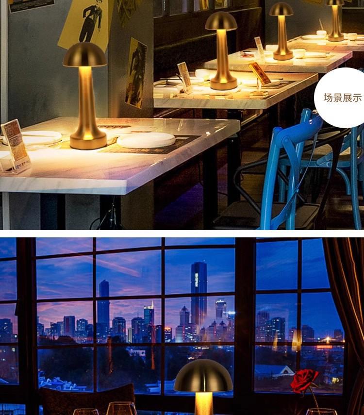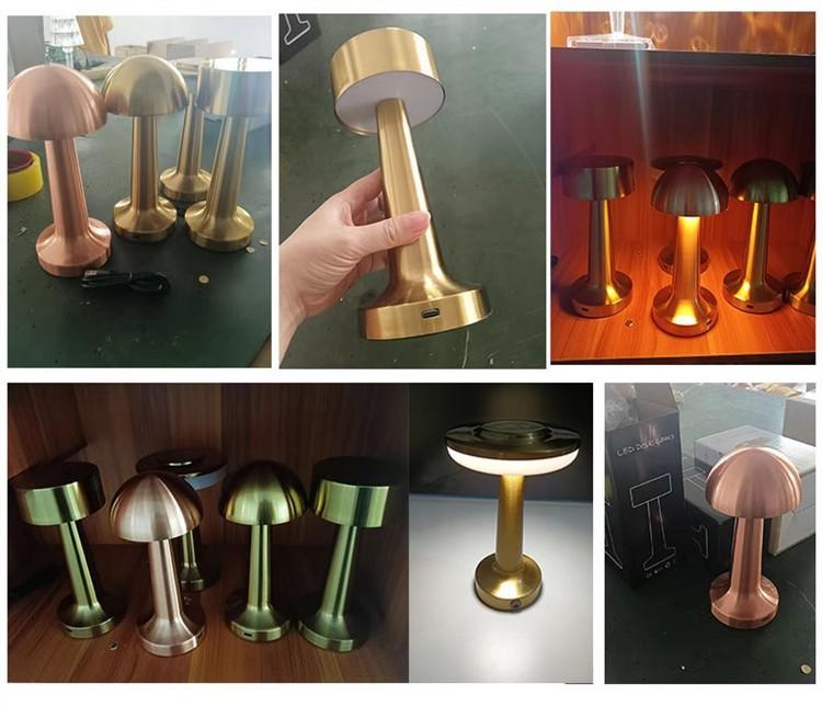 Luminária de Mesa Recarregável Cogumelo Nórdica Retrô Cor Cobre para Estudo, Lâmpada de Atmosfera de Cabeceira para Restaurante Haltere, Recarregável com Três Cores