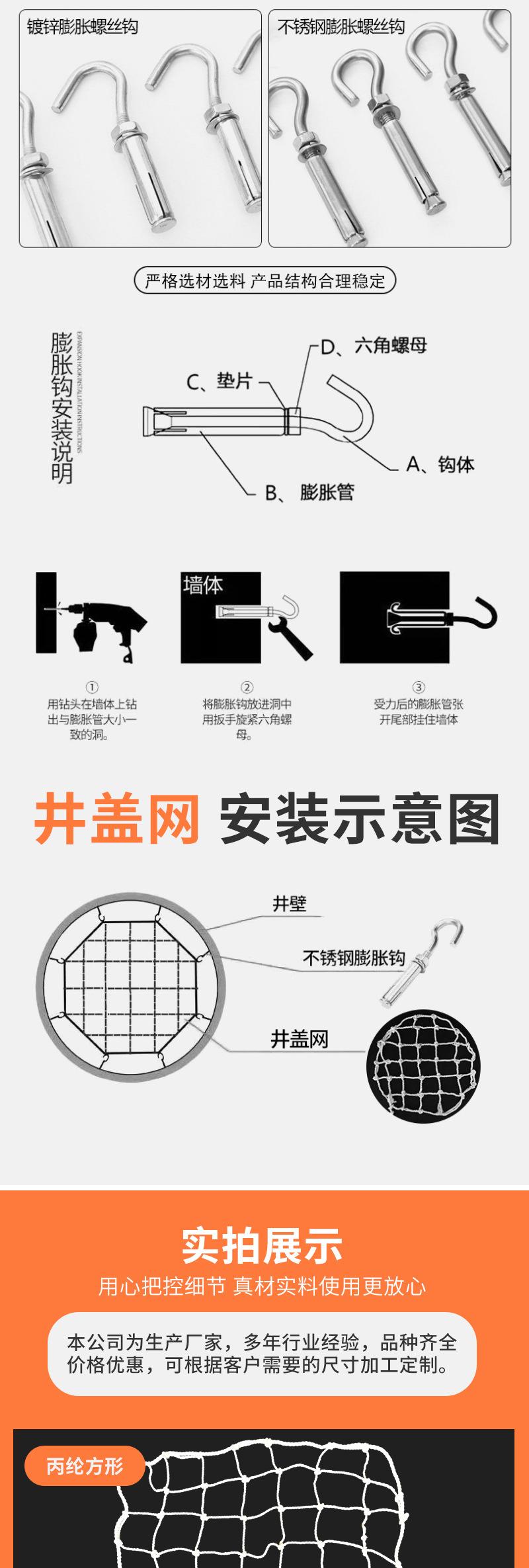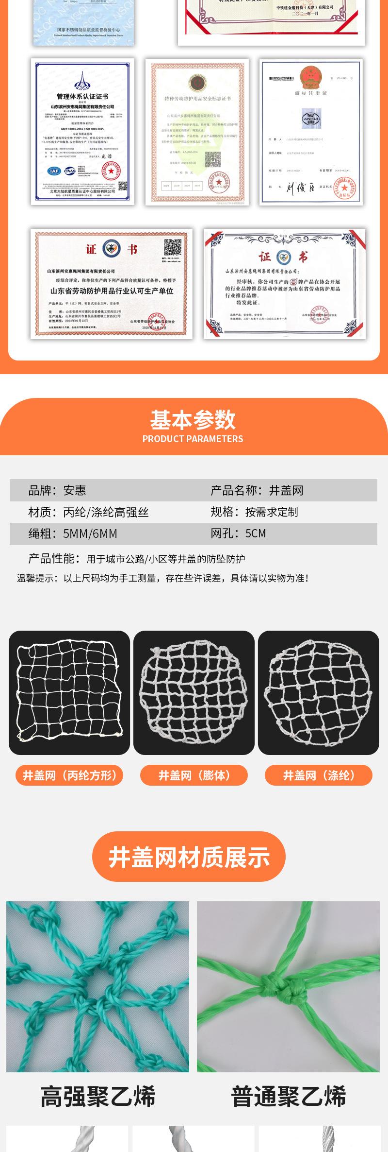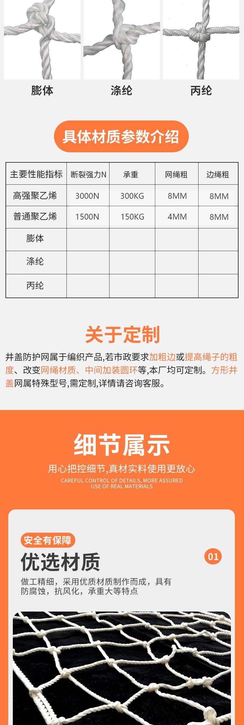 Vendas diretas da fábrica de Anhui de tampas de bueiro residenciais de rodovias urbanas, rede protetora antiqueda, rede quadrada redonda para tampas de bueiro
