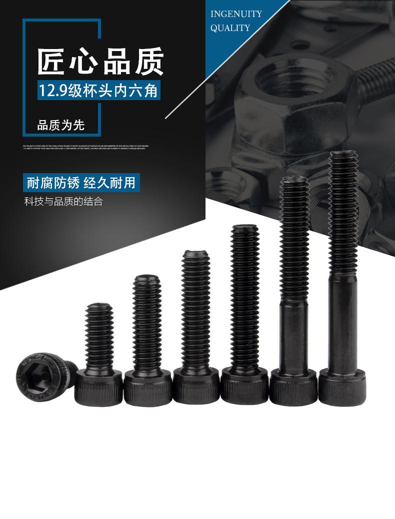 Parafuso sextavado de cabeça de copo de grau 12,9 Parafuso de soquete hexagonal de alta resistência Parafuso de cabeça de soquete preto M1.4-M16
