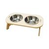 3, tigela dupla de aço inoxidável 304 com suporte para tigela e cabeça de gato, tamanho da embalagem: 38 cm * 20,5 cm * 8 cm (embalagem de caixa única); 620 g;
