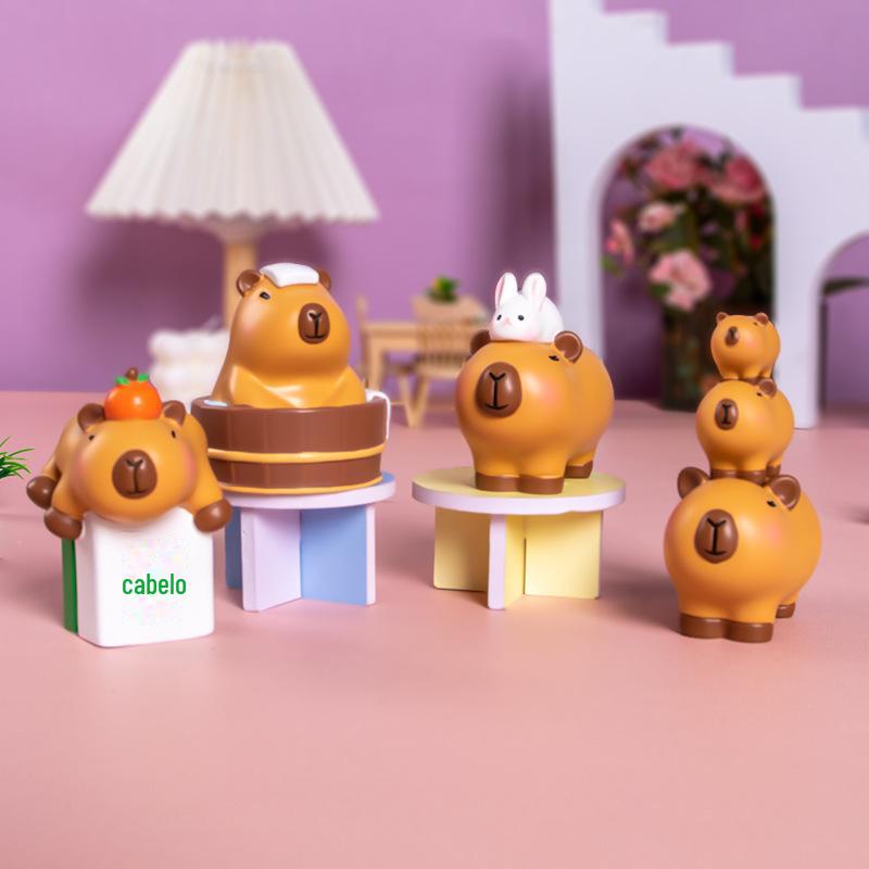 Capibala A stacked dolphin, Caphibala B Bath Dolphin, Capibala C- back rabbit dolphin, Caphibala D-haired pers...