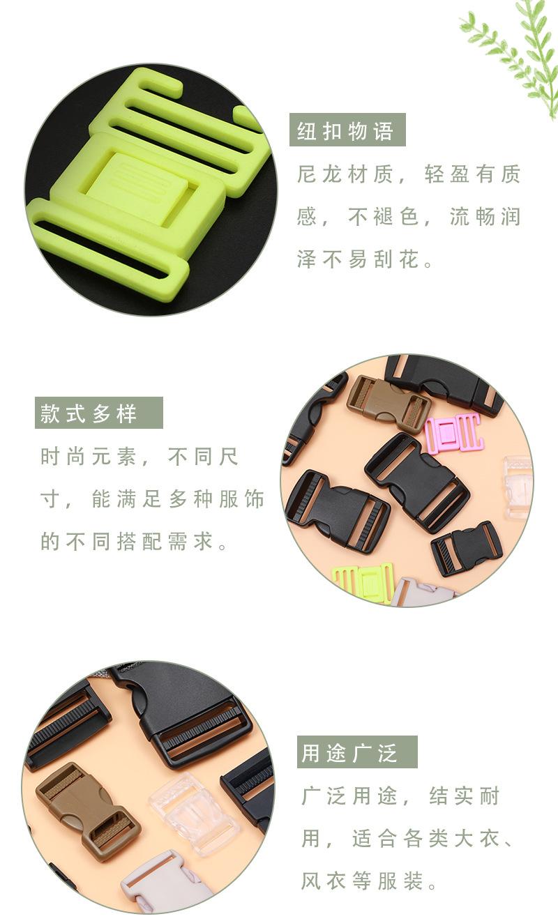 Detalhes da fivela de nylon para bagagem Tingimento personalizado Processo de personalização de botões