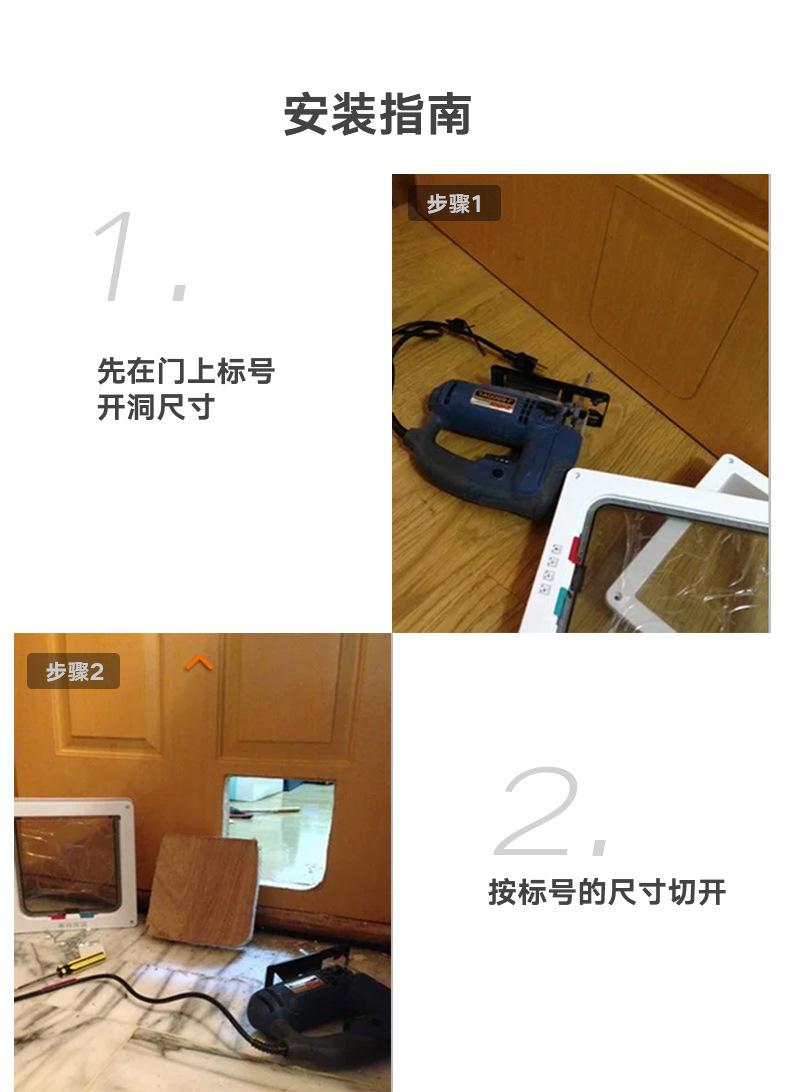 Descrição: Ambos os lados podem ser livremente entrados e saídos (totalmente abertos). Esta porta para cães tem uma tampa traseira, que pode ser conectada e travada quando não estiver em uso (totalmente fechada).