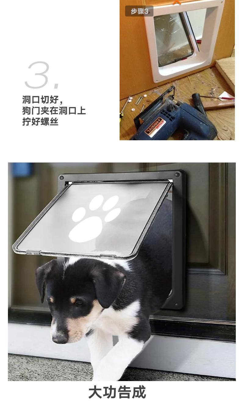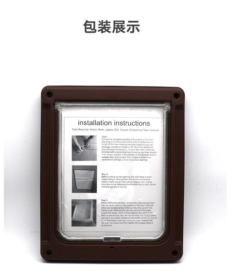 Descrição: Você pode entrar e sair livremente por ambos os lados. Esta porta para cães possui uma tampa traseira que pode ser trancada quando não estiver em uso.