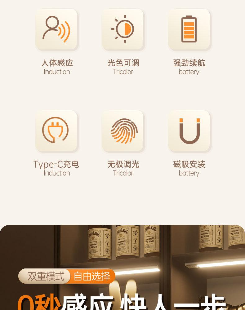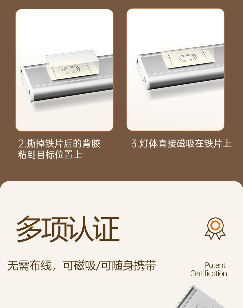 Compre Luz LED Inteligente Magnética Recarregável com Sensor de Corpo Humano para Guarda-Roupa, Adega, Corredor, Escada, Armário, Luz LED com Sensor no atacado no Joom.pro