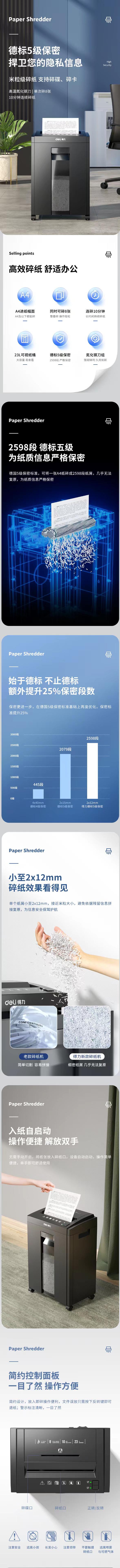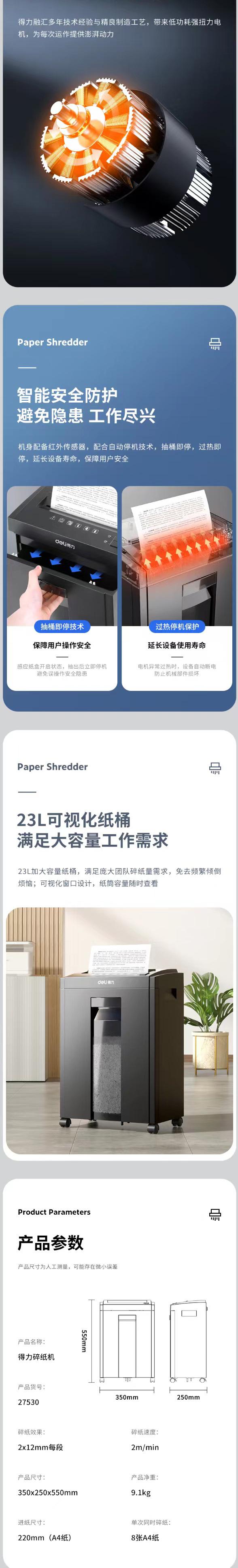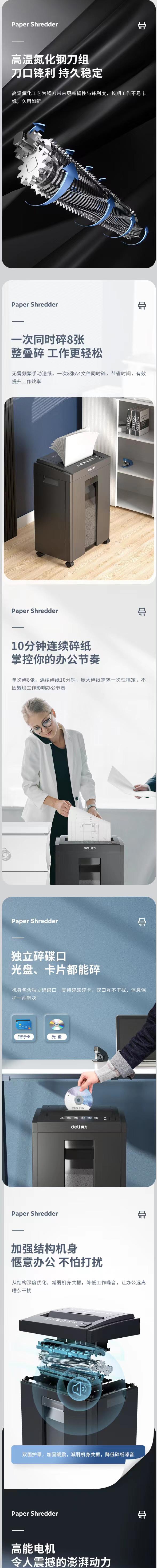 Deli 27530 triturador nível 5 papel triturado confidencial Moedor de arquivos comerciais de alta potência 8 folhas 23L de cada vez