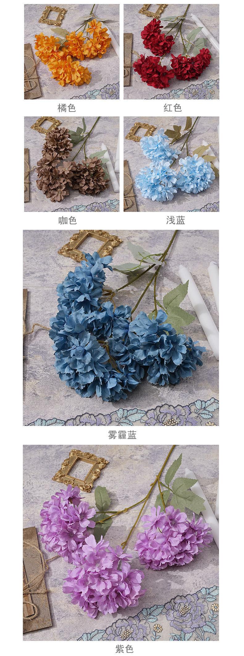 Flores Artificiais Hortênsia de 3 Cabeças, Flores Artificiais de Seda, Arranjos de Flores de Plástico, Arranjos de Casamento, Decoração de Sala de Estar