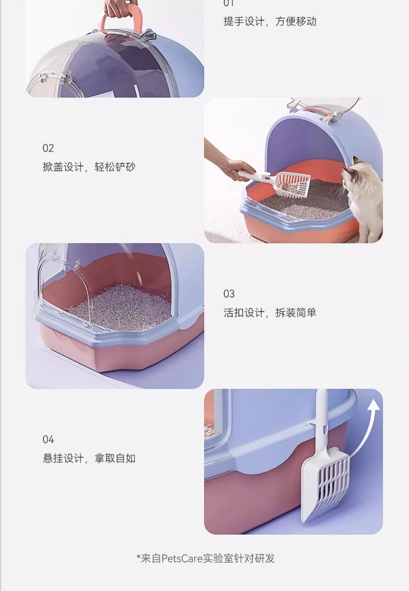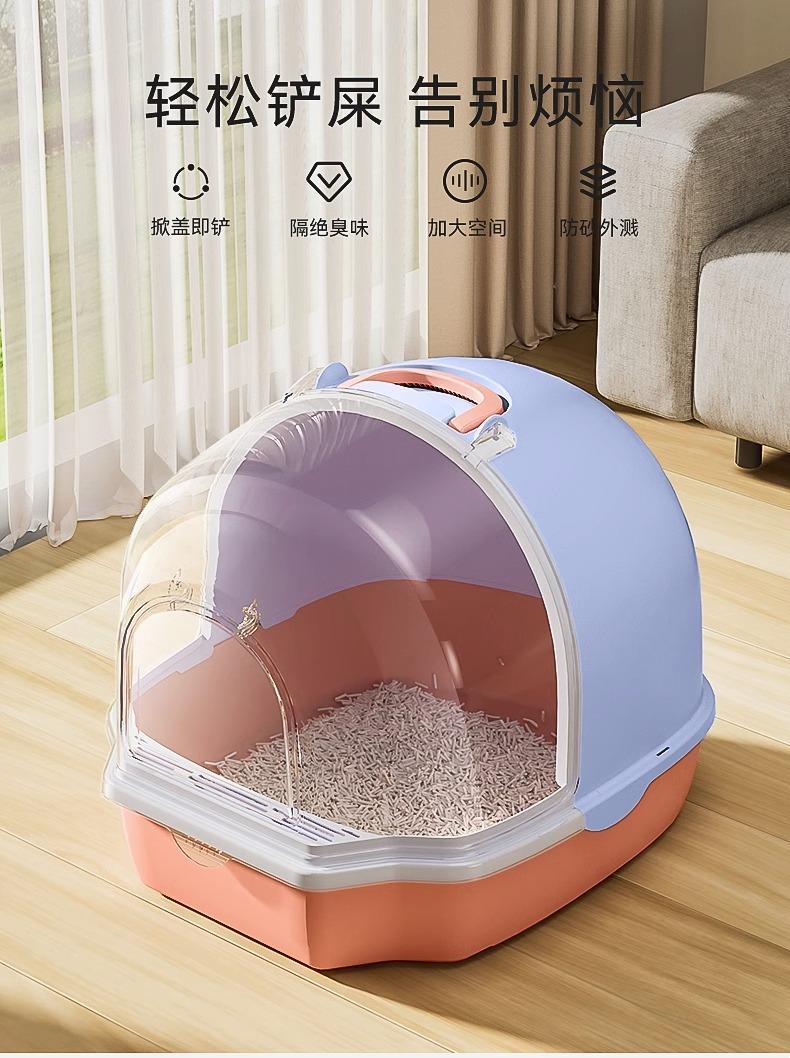 Caixa de areia para gatos grande, semi-fechada, desodorante anti-respingos, suprimentos para gatos