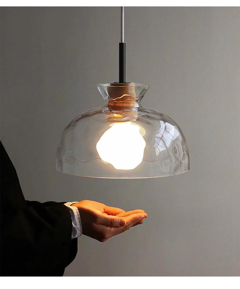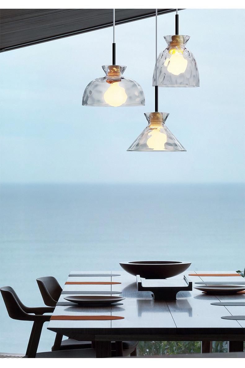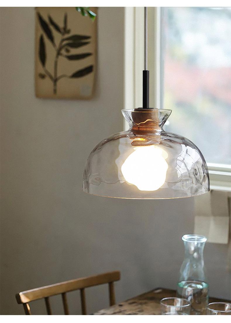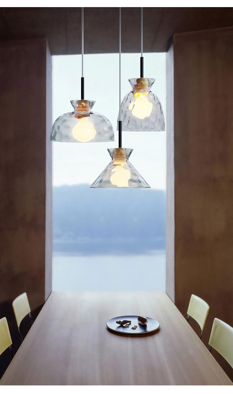 Lustre nórdico de restaurante, luminária de mesa criativa retrô para café e bar, lustre pequeno simples de estilo wabi-sabi japonês, uma colisão artística de vidro transparente com textura de água e madeira original, um estilo de design simples e limpo, como um lustre para restaurantes, quartos, salas de estudo, varandas, janelas salientes é particularmente adequado, bem-vindo para comprar.