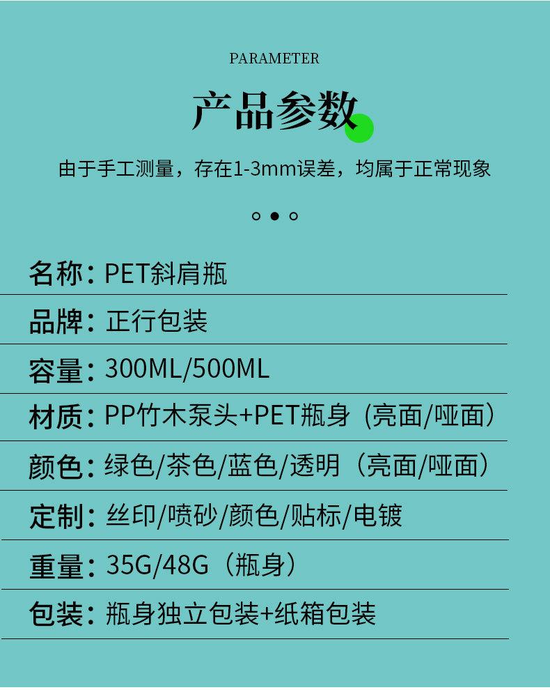 Spot 300ml500ml push-type oblíquo ombro loção frasco shampoo gel de banho frasco fosco PET sub-frasco