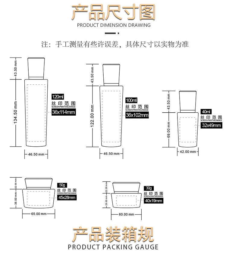 30g cream bottle (naked bottle + accessories), 50g cream bottle (naked bottle + accessories), 100ml lotion bot...