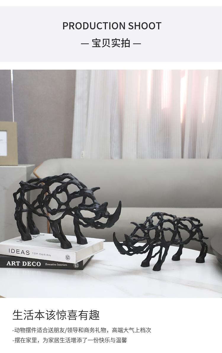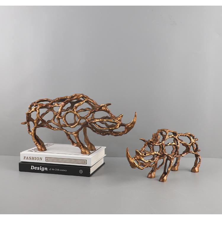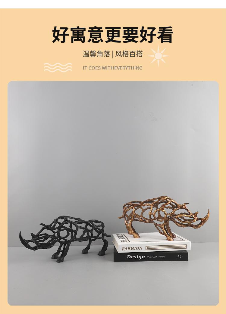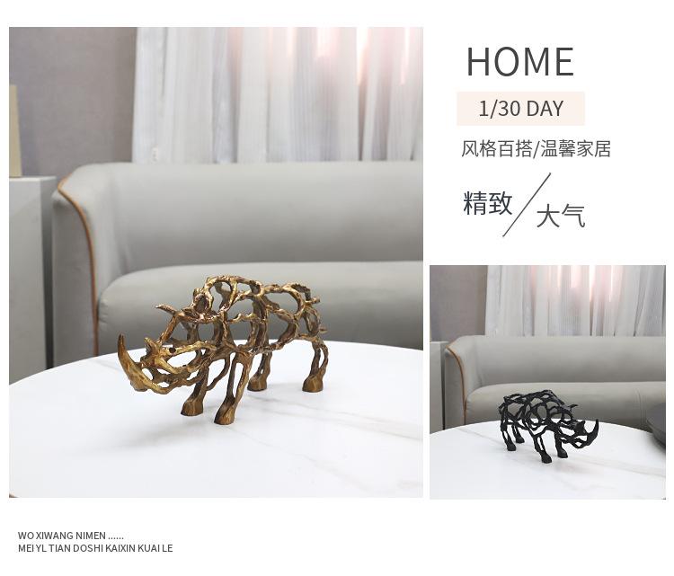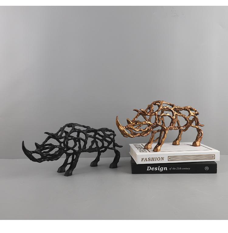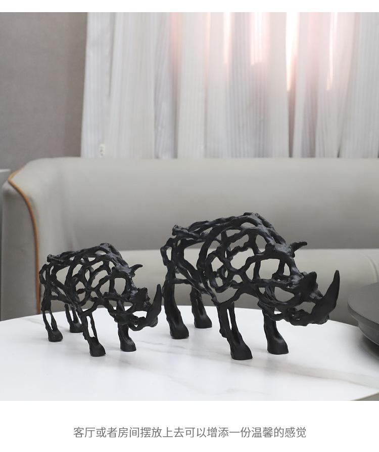 Nordic Creative Abstract Metal Hollow Rhino Animal Escultura Ornamentos Sala de estar Entrada Hotel Soft Home Acessórios