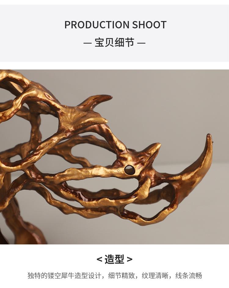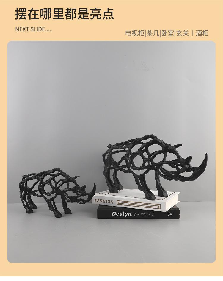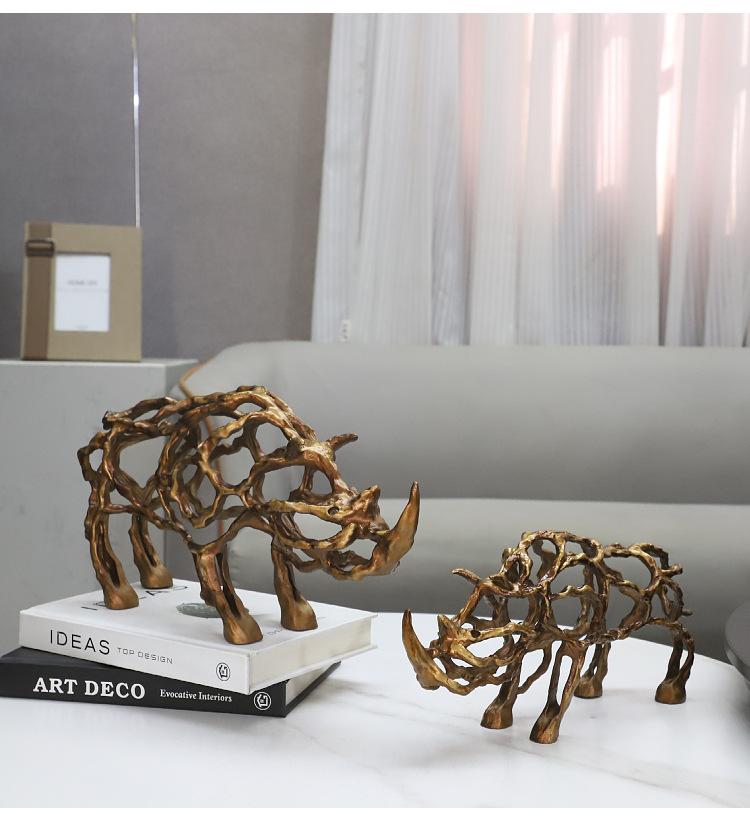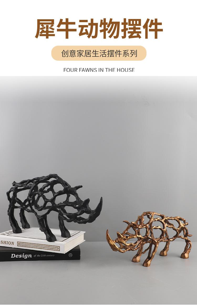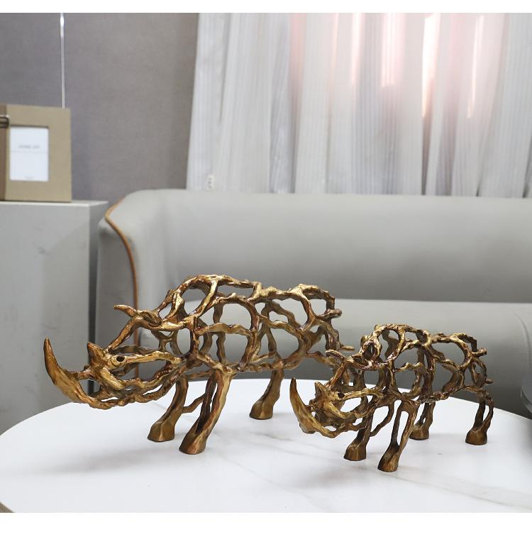 Nordic Creative Abstract Metal Hollow Rhino Animal Escultura Ornamentos Sala de estar Entrada Hotel Soft Home Acessórios