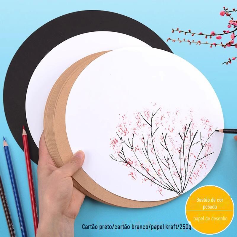 Papel de pintura redondo de papel de embalagem arte preto e branco engrossado papel de esboço pintura de papelão colorido papel de pintura frente e verso