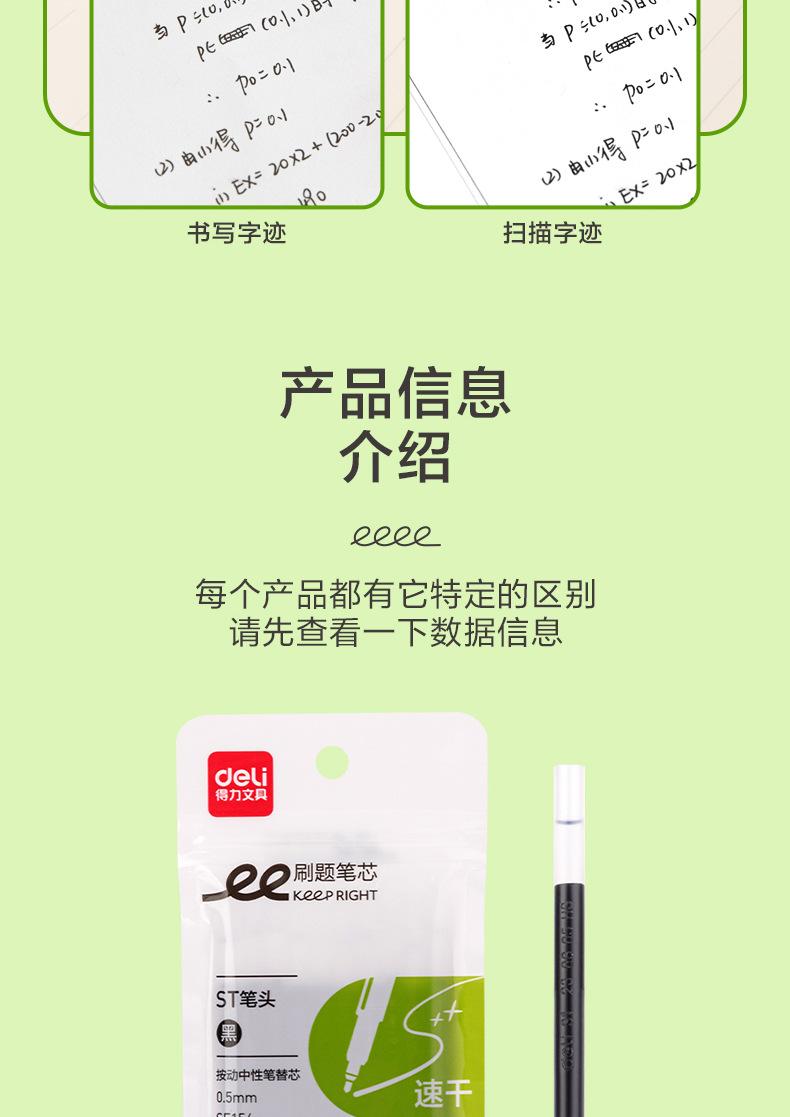 Refil neutro de secagem rápida Deli SE154 0.5mm Press ST cabeça refil de água preta para estudantes 12 pack